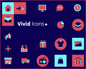 Enrich your pages with all the Vivid.js multicolor icons: you can customize the shades, set effects and add a link.